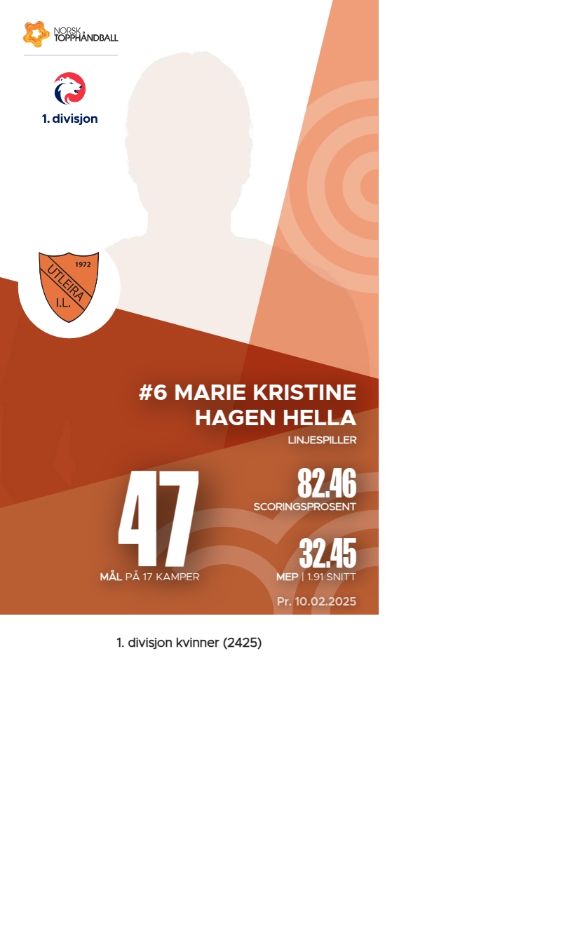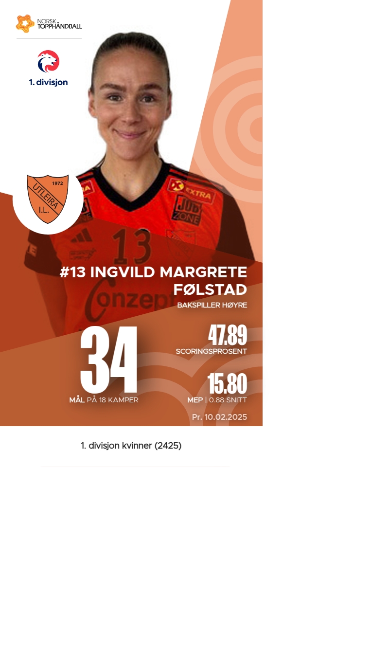 Utleira har flere sterke spillere som bidrar betydelig til lagets prestasjoner i 1. divisjon. Synne Olsen har vært en sentral skikkelse med sine 72 mål og 62 assist, noe som gir henne en høy MEPP på 4.3. Også Ingvild Margrete Følstad skiller seg ut med sine 34 mål og imponerende 44 assist, og en MEPP på 2.9. Karen Forseth har vist soliditet i angrep med 54 mål, mens Ida Larsen Brattreit og Marie Kristine Hagen Hella også har levert viktige bidrag. Med slike talenter i laget, er Utleira godt posisjonert for å kjempe om topplasseringer.