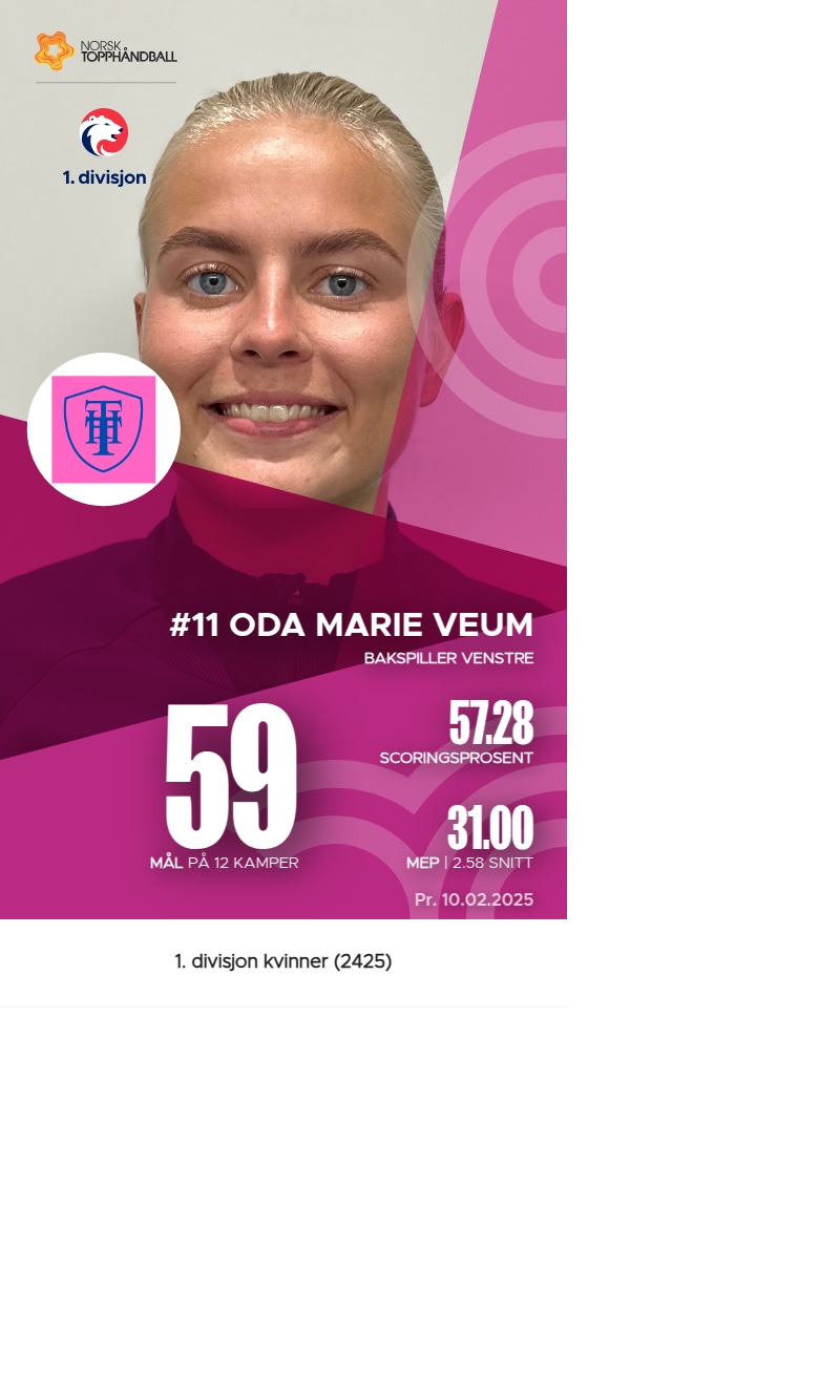 Trondheim TH har flere sterke spillere som har vist seg frem denne sesongen. Oda Marie Veum har vært en offensiv kraft med 59 mål og 42 assists, og hun har en høy effektivitet med en MEP på 3,2. Lone Forbord har også gjort en solid innsats, spesielt i kampen mot Vålerenga, og bidrar med både mål og assists. Madelen Nilsskog Johnsen er en annen viktig spiller, med 44 mål og 34 assists, selv om hun har hatt en del bestrafninger. Disse spillerne viser at Trondheim TH har potensialet til å utfordre de beste lagene i 1. divisjon.