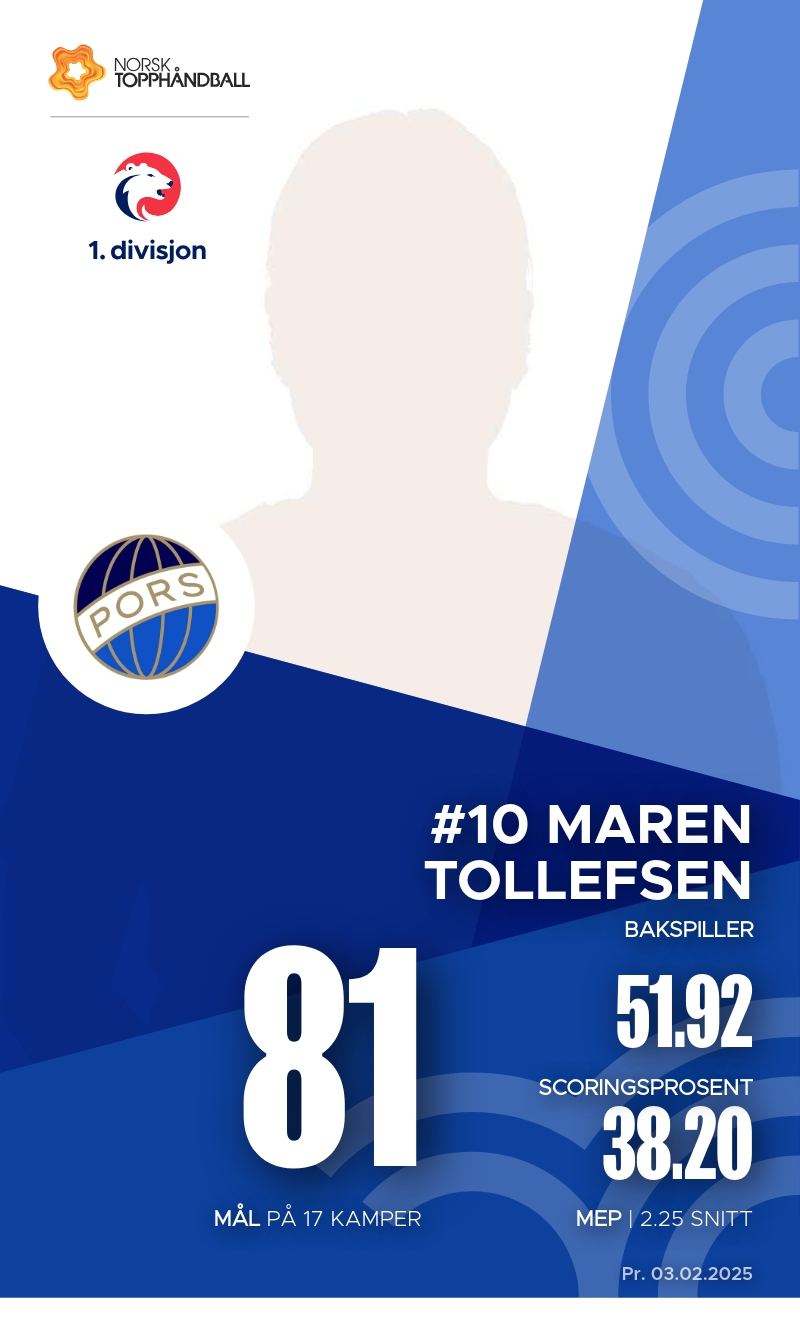 Pors har flere dyktige spillere som bidrar til lagets prestasjoner i 1. divisjon. Maren Tollefsen har vært en sentral figur med 81 mål og 30 assists, noe som gir henne en solid effektivitet med en MEPer på 1.9. Polina Ivanova Gencheva skiller seg også ut med sine 44 mål og en imponerende MEPer på 5.5, noe som gjør henne til en av de mest effektive spillerne i ligaen. Thea Karen Bakås har vist seg å være en viktig aktør med 45 mål og 6 assists, samt en MEPer på 2.6. Disse spillerne har vært essensielle for Pors’ konkurranseevne denne sesongen.